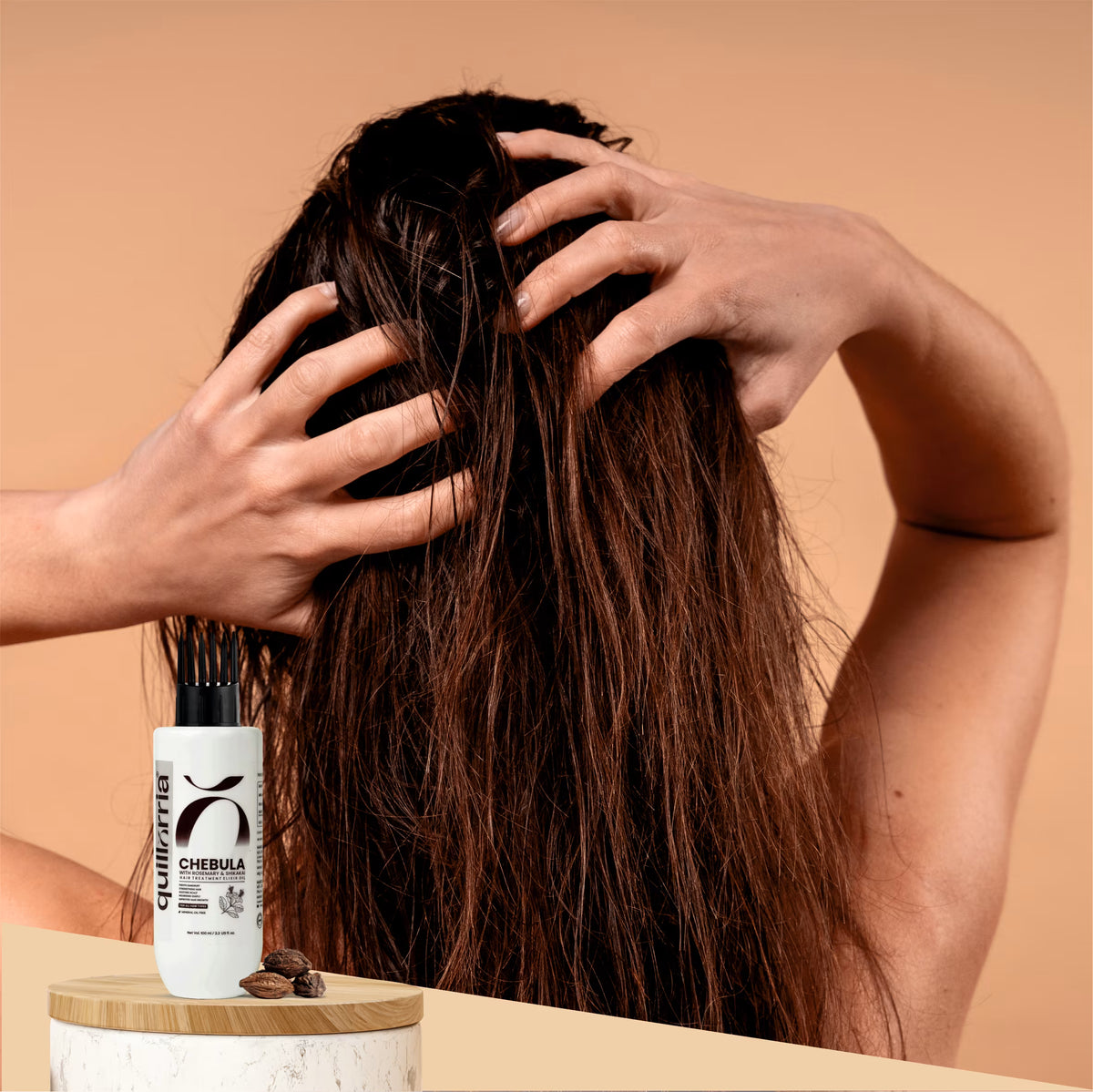 Chebula hair oil is used to strengthen hair roots, reduce hair fall, and improve scalp health. Quillorria’s Chebula Hair Treatment Elixir Oil also nourishes dry hair, boosts shine, and supports healthy hair growth.