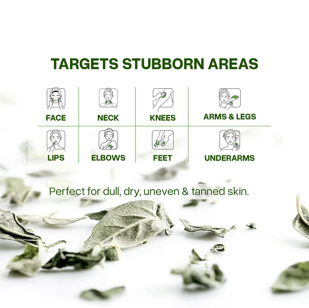 Green tea is known for its powerful antioxidant properties, which help support the skin against environmental stress and leave it looking calm, fresh, and revitalised after exfoliation.
